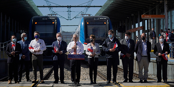 El Presidente de la República, Sebastián Piñera, junto a la Ministra de Transportes y Telecomunicaciones, Gloria Hutt; el Subsecretario de Transportes, José Luis Domínguez; el delegado presidencial, Patricio Kuhn; el gobernador del Biobío, Rodrigo Díaz y los presidentes de EFE, Pedro Pablo Errázuriz, y de EFE Sur, Víctor Lobos, anunciaron que este miércoles 27 de octubre entrará en operación la nueva flota de trenes para los servicios Biotren y Laja-Talcahuano.