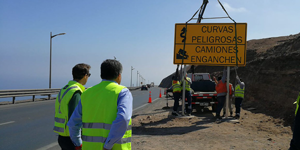 La actividad estuvo liderada por el Seremi de Transportes y Telecomunicaciones Carlos Navarrete Cortés y la concesionaria Rutas del Desierto y consistió en la instalación de la señalética que integra en un mismo letrero el mensaje “Curvas peligrosas” y “Camiones enganchen”. La señalética tiene dimensiones de 2.9 metros por 1,75 metros y fue instalada al costado derecho de la Ruta 16 en el kilómetro 39.500 en la bajada desde Alto Hospicio hasta Iquique.
