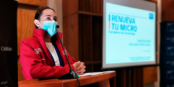 En esta jornada en uno de los salones del Teatro Municipal de Chillán, la seremi de Transportes y Telecomunicaciones, Bárbara Kopplin, junto al equipo de la División de Transporte Público Regional realizaron una capacitación para los 39 beneficiarios del programa “Renueva Tu Micro”.